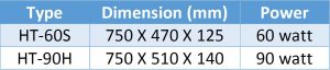 جدول ابعاد و توان مصرفی حوله گرمکن های برقی